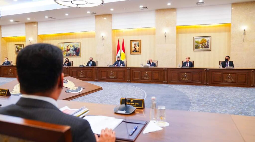 ئەمڕۆ چوارشەممە 13/10/2021 ئەنجوومەنی وەزیرانی هەرێمی کوردستان، بە سەرۆکایەتیی مەسرور بارزانی سەرۆکی ئەنجوومەنی وەزیران، کۆبوونەوەی ئاسایی خۆی بەڕێوە برد و تێیدا سەرۆک وەزیران جەختی کردەوە پێویستە نوێنەرانی کوردستان لە ئەنجوومەنی نوێنەرانی عێراق، بە هەماهەنگیی و یەکڕیزی کار لەپێناو داکۆکیکردن لە شایستە و مافە دەستوورییەکانی خەڵکی کوردستاندا بکەن.