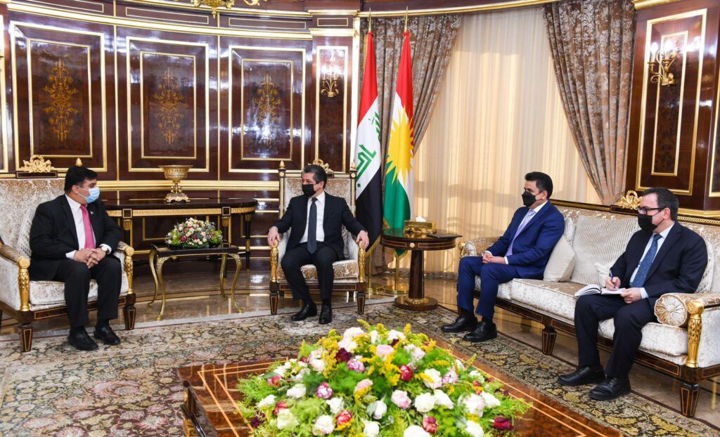 ئەمڕۆ چوارشەممە 10ی نۆڤێمبەری 2021 مەسرور بارزانی سەرۆکی حکومەتی هەرێمی کوردستان، پێشوازی لە ئەحمەد ئەمجەد عەلی باڵیۆزی پاکستان لە عێراق کرد.