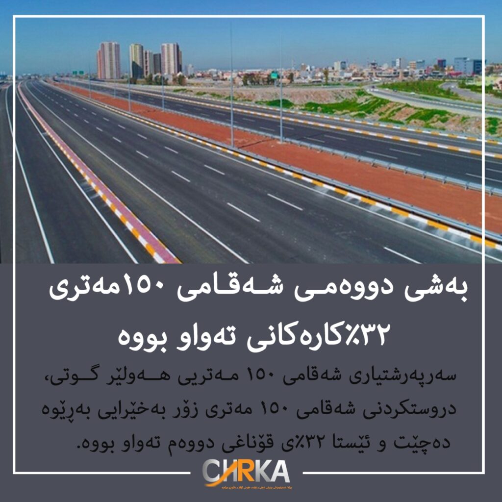 ئەوەش خراوەتە روو: “دوای تەواو بوونی بەشی یەکەمی پڕۆژەکە و کردنەوەی بەڕووی شۆفێران کارکردن لە بەشی دووەمی پڕۆژەی شەقامی 150 مەتری هەولێر دەستیپێکرد”.