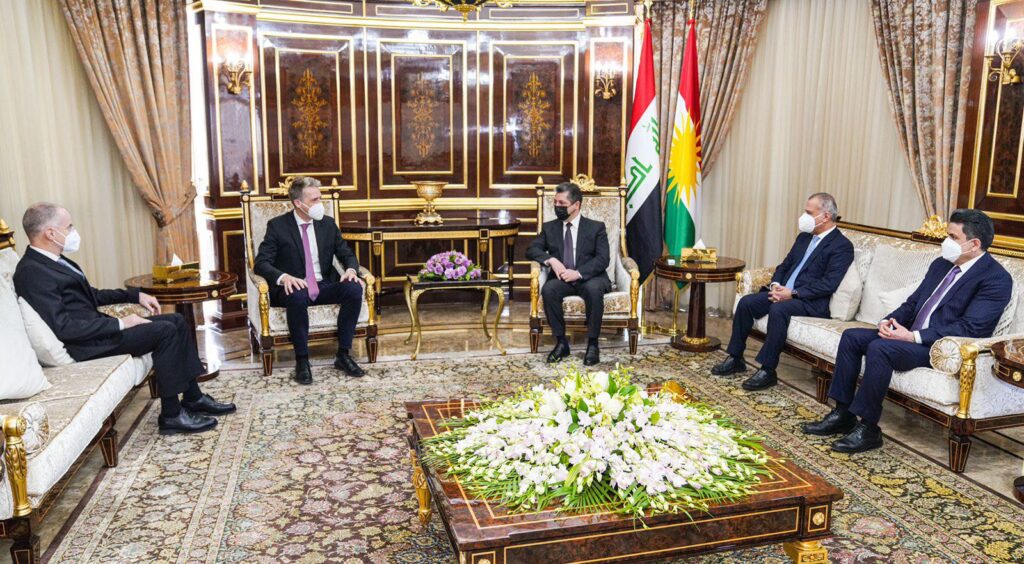 ئەمڕۆ یەکشەممە 6ی شوباتی 2022 مەسرور بارزانی سەرۆکی حکومەتی هەرێمی کوردستان، پێشوازی لە گیرۆڵد ڤۆڵمەر سەرۆکی بەشی رۆژهەڵاتی ناوەڕاست و باکووری ئەفریقا و باشووری ئەوروپا لە وەزارەتی دەرەوەی نەمسا  و ئۆسکار ڤوستنگەر باڵیۆزی نەمسا لە عێراق و ئوردن کرد .