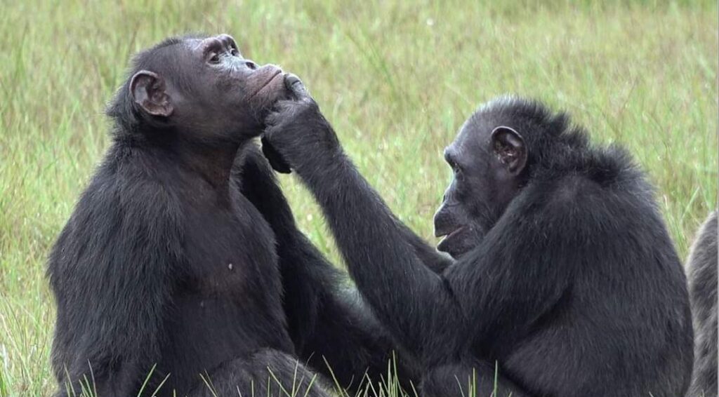لێکۆڵەران چەندین نمونەی لەم شێوەیەیان لەنێو کۆمەڵە مەیمونێکی شامپازی کە ژمارەیان نزیکەی 45 مەیمون دەبێت بینیوە لە “پارکی نیشتمانی لوانگۆ” لە شاری گابۆنی ئەفریقا وەک بەشێک لە “پرۆژەی شامپازی ئۆزۆگا”