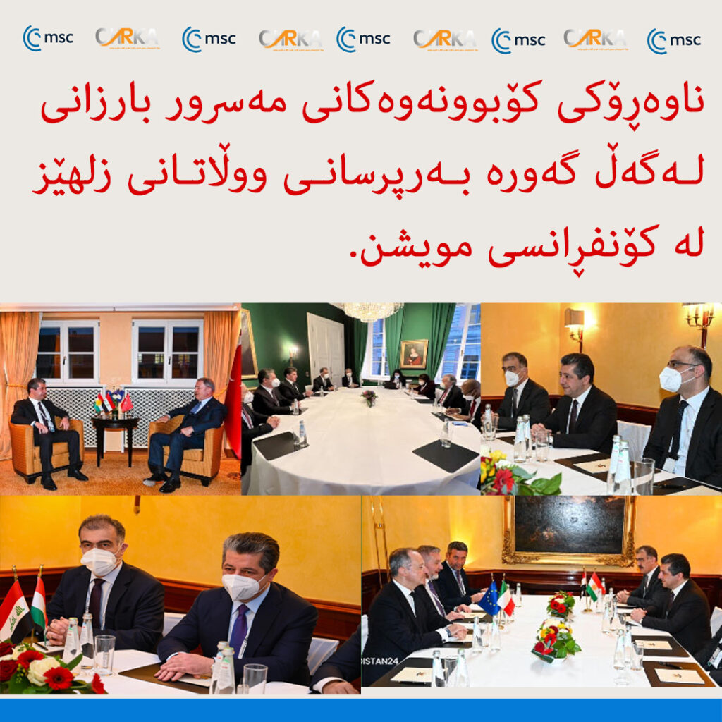 ئەمڕۆ شەممە، 19ی شوباتی 2022 لە دووەم رۆژی بەشداریکردنیدا لە کۆنفرانسی ئاسایشی میونشندا، مەسرور بارزانی، سەرۆکی حكومەتی هەرێمی کوردستان لەگەڵ تۆماس ئیرندل، سەرۆکی لیژنەی پەیوەندییەکانی دەرەوە لە پارتی ( CSU ) و رۆدریك کیسوێتەر لە پارتی (CDU)کۆبووەوە.
