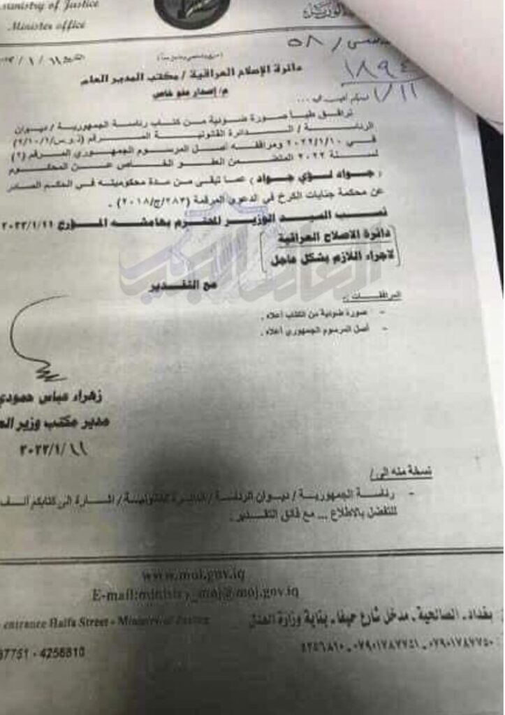 پسپۆڕێكی ناوهندی توێژینهوهكانی رۆژههڵاتی ناوهڕاست پێشنیازی پێكهێنانی لیژنهیهكی یاسایی دهكات، بۆ بهرزكردنهوهی سكاڵا بۆ دادگای فیدراڵ له دژی بڕیارێكی بهرههم ساڵح، سهرۆك كۆماری كاربهڕێكهری عێراق.