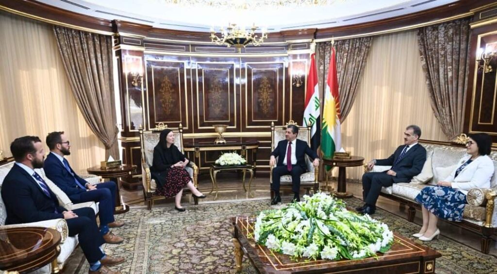 ئەمڕۆ پێنجشەم مەسرور بارزانی سەرۆكی حکوومەتی هەرێمی كوردستان پێشوازی لە شاندێكی ئەمەریکی بە سەرۆكایەتیی ڤیکتۆریا تەیلەر جێگری یاریدهدهری وهزیری دهرهوهی ئهمهریکا كرد.