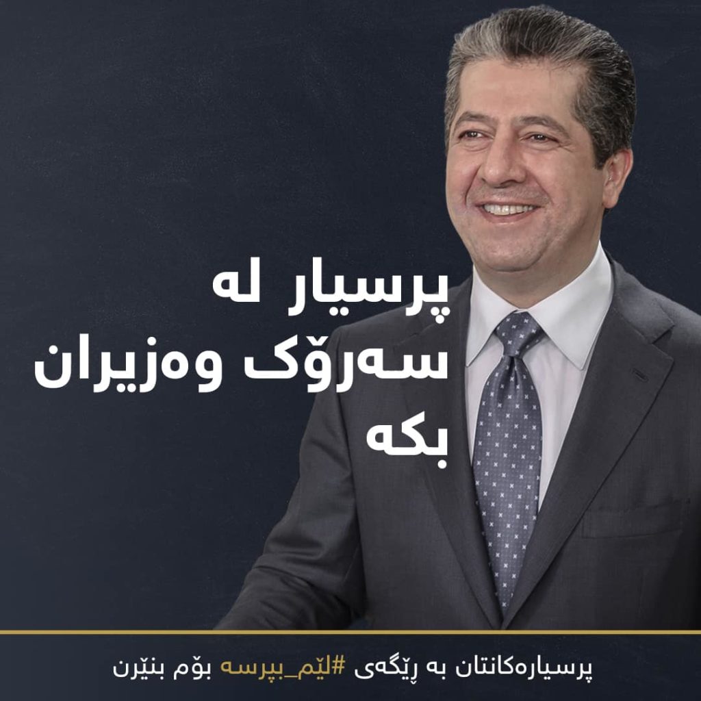 ئێوارەی ئەمڕۆ دووشەممە مەسرور بارزانی سەرۆكی حكوومەتی هەرێمی كوردستان لە دەستپێشخەرییەكی نوێدا بۆ ئاگاداربوون لە دۆخی ژیانی هاووڵاتییان، هاشتاگی لێم_بپرسە# ی بڵاو كردەوە.