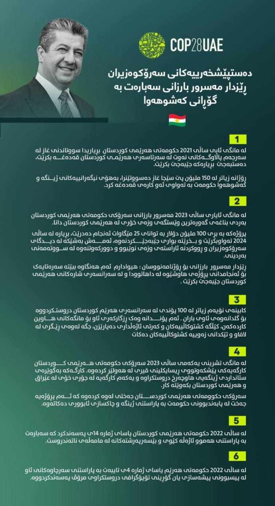 ده‌ستپێشخه‌رییه‌كانی مه‌سرور بارزانی، سه‌رۆكوه‌زیرانی هه‌رێمی كوردستان سه‌باره‌ت به‌ گۆڕانی كه‌شوهه‌وا