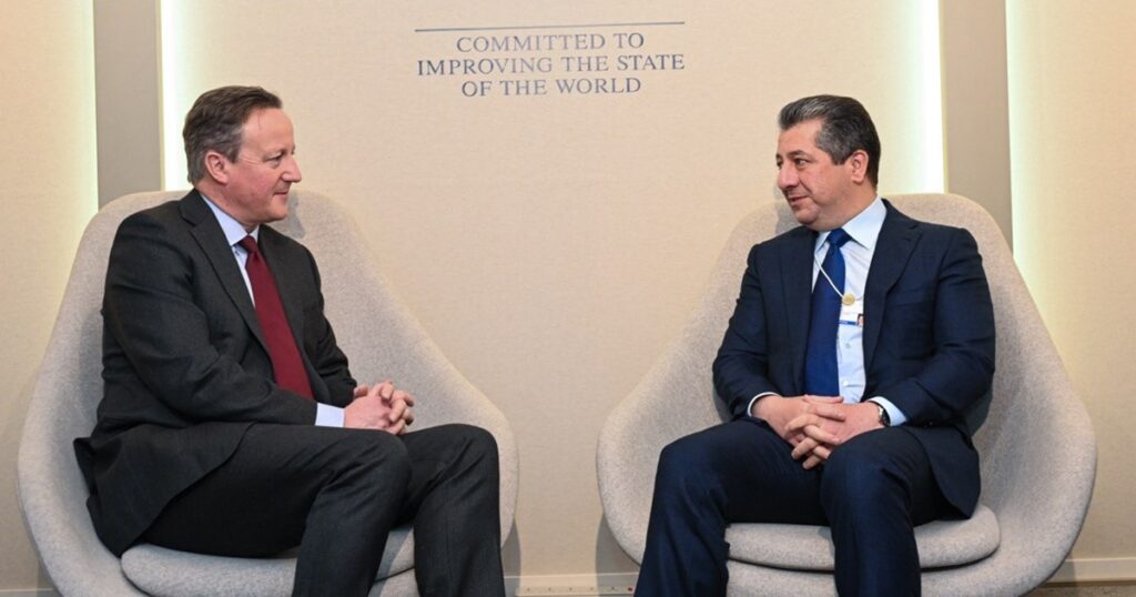 ئەمڕۆ پێنجشەممە 18ی 1ی 2024، مەسرور بارزانی، سەرۆکی حکوومەتی هەرێمی کوردستان، لە داڤۆس، لەگەڵ دەیڤد کامیرۆن، وەزیری دەرەوەی به‌ریتانیا كۆ بووه‌وه‌.