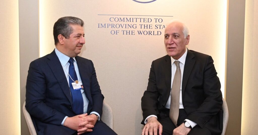 ئەمڕۆ پێنجشەممە 18/1/2024، مەسرور بارزانی، سەرۆکی حکوومەتی هەرێمی کوردستان لە داڤۆس، لەگەڵ ڤاهاگن خاچاتوریان، سەركۆماری ئەرمەنستان کۆ بووەوە، دوايين گۆڕانکاری و پێشهاتەکانی عێراق و ناوچەکە و برەودان بە پەیوەندیی نێوان هەرێمی کوردستان و ئەرمەنستان تاوتوێ کرا.