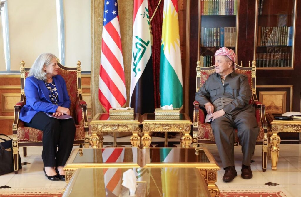 ئەمڕۆ شەممە 30ی ئاداری 2024، لە سەلاحەددین سەرۆك مەسعود بارزانی پێشوازیی لە ئەلینا ڕۆمانسكی، باڵوێزی ئەمریكا لە عێراق كرد و چەند پرسەکی گرنگیان تاوتوێکرد.