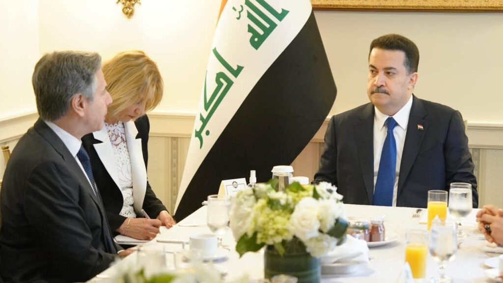 گوێرهی راگهیهندراوی نووسینگهی سهرۆكوهزیرانی عێراق، له واشنتن محهممهد شیاع سوودانی سهرۆكوهزیرانی عێراق لهگهڵ ئهنتۆنی بلینكن وهزیری دهرهوهی ئهمهریكا كۆبووهوه.