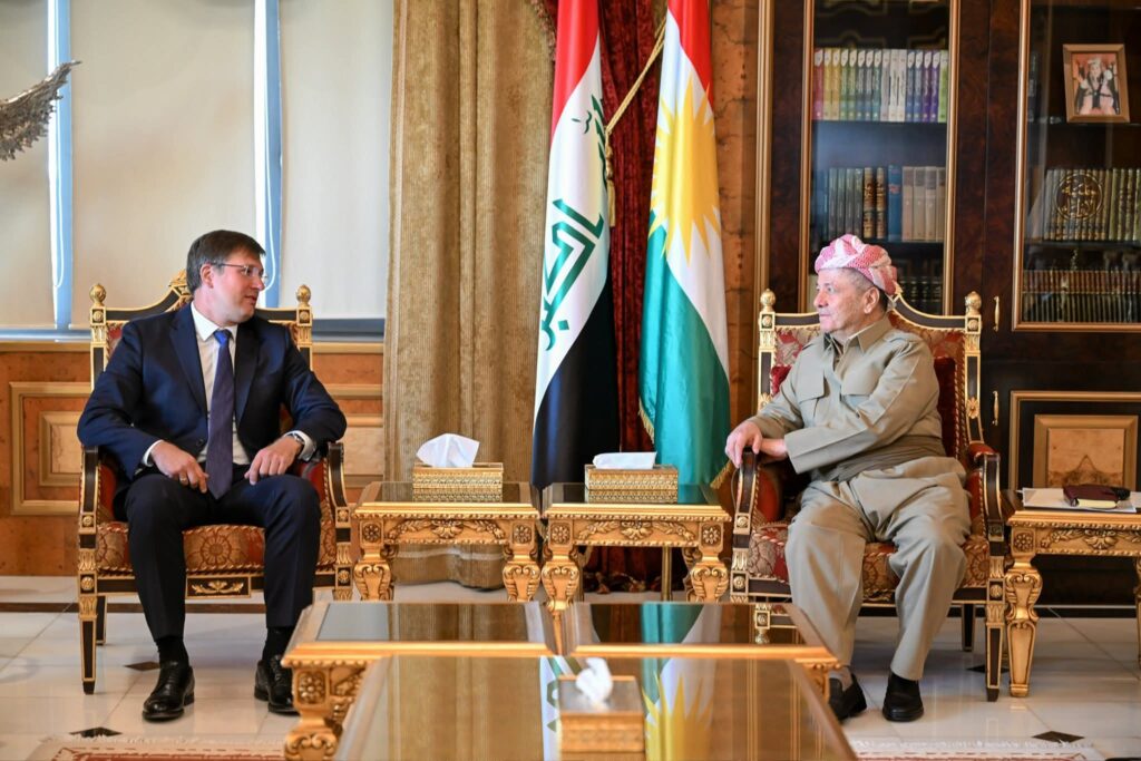 سەرۆك مەسعود بارزانی، پێشوازیی لە كونسوڵی گشتیی ڕووسیا لە هەولێر كرد و چەند بابەتێكی هەنووكەییان تاوتوێ كرد.ئەمڕۆ چوارشەممە 13/8/2025، لە سەڵاحەدین، سەرۆک بارزانی پێشوازیی لە ماکسیم رۆبین، کونسوڵی گشتیی ڕووسیا لە هەولێر کرد، لە دیدارەکەدا بیڕورا لە بارەی بارودۆخی سیاسی عێراق، پێشهات و گۆڕانکارییەکانی ناوچەکە، پەیوەندییەکانی حکوومەتی هەرێمی کوردستان و حکوومەتی عێراقی فیدراڵ، پێکهێنانی کابینەی نوێی حکوومەتی هەرێمی کوردستان تاوتوێ کران.هەر لە دیدارەكەدا، جەخت لە پەرەپێدانی پەیوەندیەکانی نێوان هەرێمی کوردستان و ڕووسیا کرایەوە.