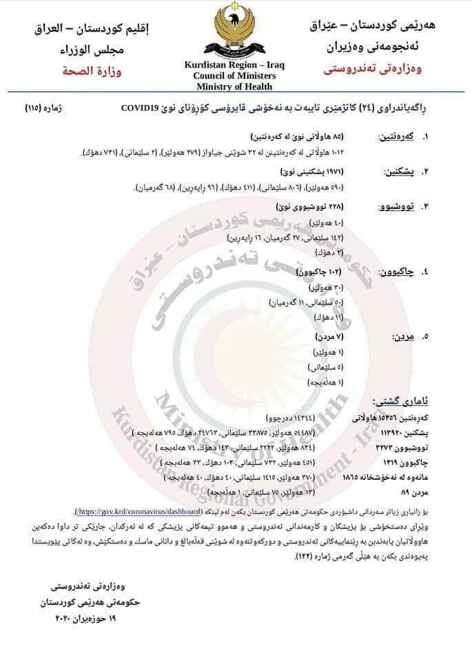228 كهسى تر له ههرێم تووشى كۆرۆنا بوون