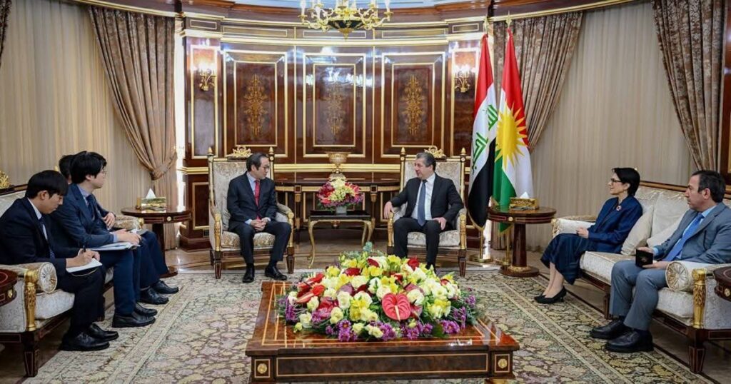 ئهمڕۆ دووشەممە، 17ـی تشرینی دووەمی 2025، مەسرور بارزانى، سهرۆكى حکوومەتی ههرێمى كوردستان، پێشوازی له لى جۆن ئيل، باڵيۆزى نوێى كۆرياى باشوور له عێراق كرد.
