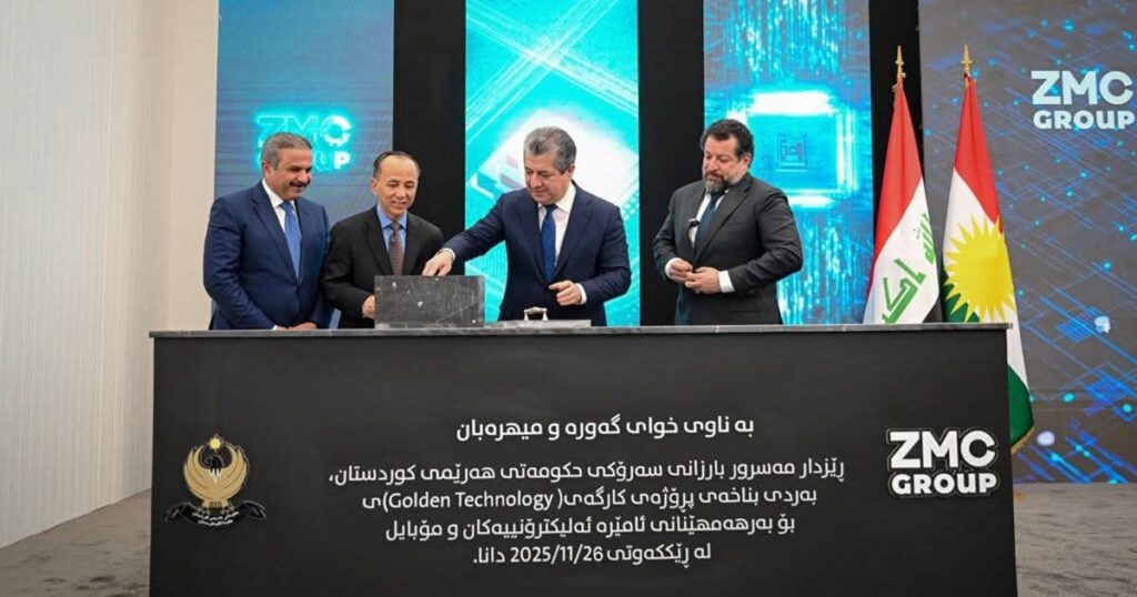 مەسروور بارزانی سەرۆكی حكوومەتی هەرێمی كوردستان، لە ڕێوڕەسمی دانانی بەردی بناغەی كارگەی (تەكنەلۆجیای زێڕین 2) لە هەولێر، رای گەیاند، لە هەموو گفتوگۆكانماندا لەگەڵ دۆستەكانمان، لەگەڵ كونسوڵخانەكان، لەگەڵ باڵیۆزەكان، لەگەڵ كۆمپانیا بیانییەكان، هەمیشە هەوڵی ئەوەمان داوە و داواشمان لێكردوون كە بیر لەوە بكەنەوە بەشێك لە كارەكانیان، لە دروستكردنی ئامێرەكانیان، بهێننە هەرێمی كوردستان.
