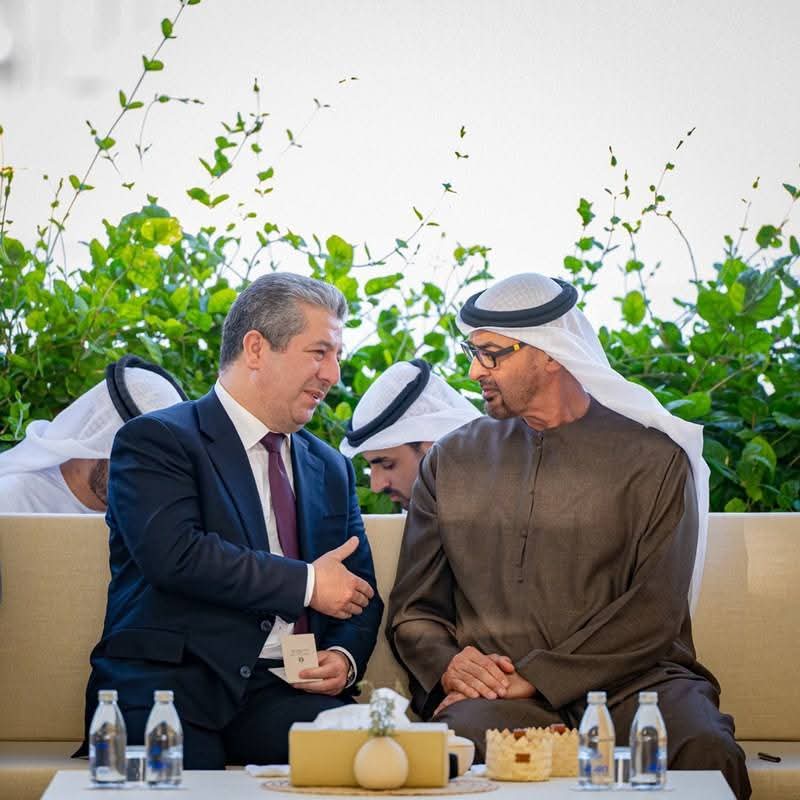 سەرۆکوەزیران مەسرور بارزانی لەگەڵ شێخ محەمەد بن زاید ئال نەهیان، سەرۆکی میرنشینی عەرەبیی یەکگرتوو، جەختیان لە پێویستیی پەرەپێدانی زیاتری پەیوەندییەکانی هەرێمی کوردستان و ئیمارات لە بوارە جۆراوجۆرەکاندا کردەوە.