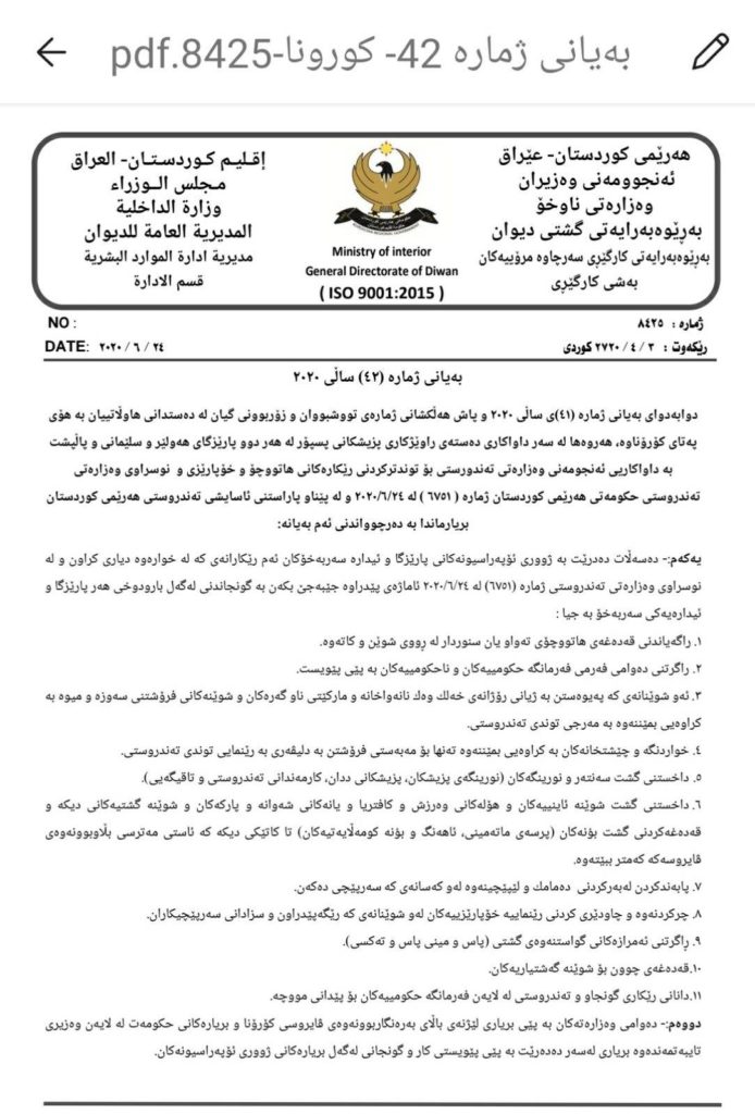 لهراگهیهندراوێكدا، وەزارەتی ناوخۆی حكومهتی ههرێمی كوردستان، بڵایكردهوه، بههۆی ههڵكشانی ژمارهی تووشبووان بهڤایرۆسی كۆرۆنا له ههرێمی كوردستاندا، بڕیاریاندا، بهداخستنی گشت سهنتهرو نۆرینگهی پزیشكی.