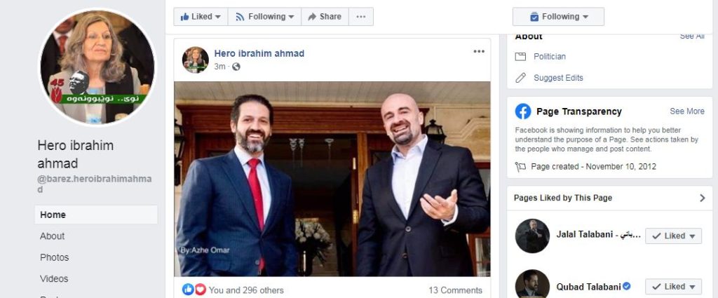 له نوێترین پۆستی فهیسبووكی هێرۆ ئیبراهیم ئهحمهد پێچهوانهی پۆستهكانی پێشووی تهنها وێنهی پافل تاڵهبانی و قوباد تاڵهبانی داناوه و ئهمجاره وێنهكه لاهوور جهنگی تێدانییه.