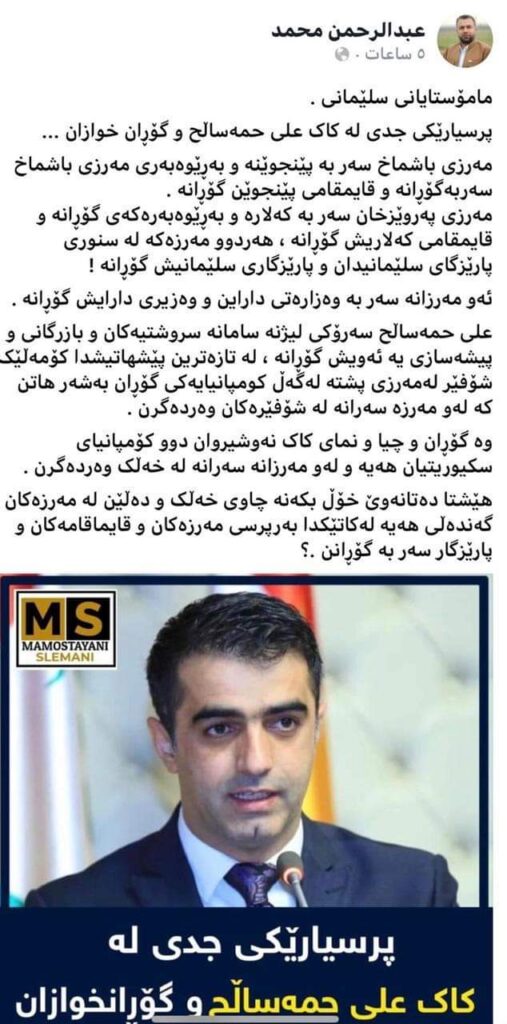 پرسیارێکی جدی لە کاک علی حمەساڵح و گۆڕان خوازان …
