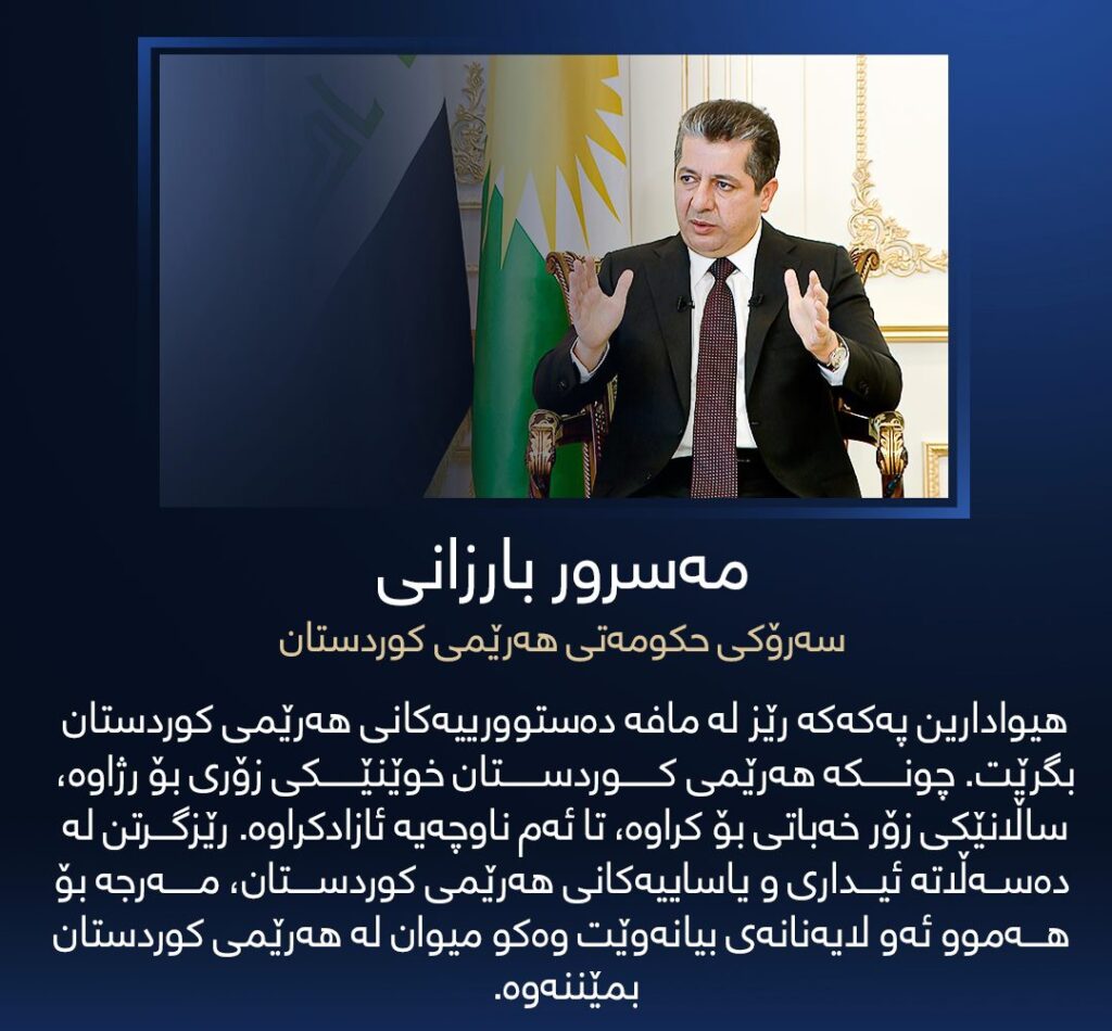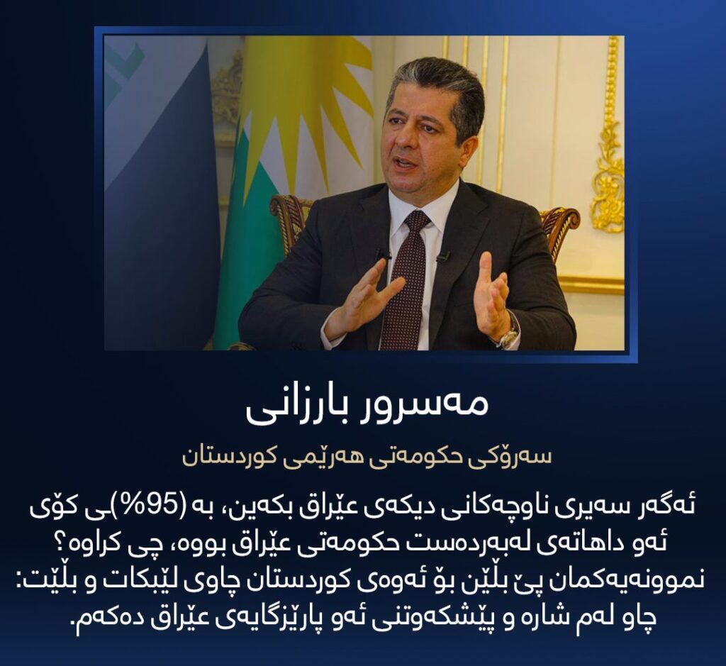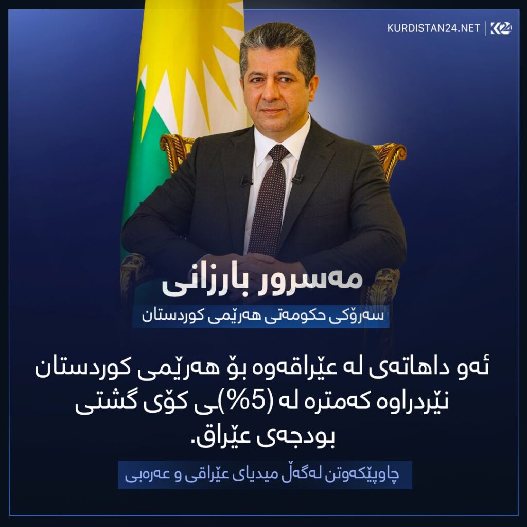 پێمخۆشه خهڵكی خۆشهویستی عێراق ئهوه بزانن، كه ههرێمی كوردستان به هیچ شێوهیهك ماف و شایسته داراییهكانی خۆی له حكومهتی عێراق وهرنهگرتووه.