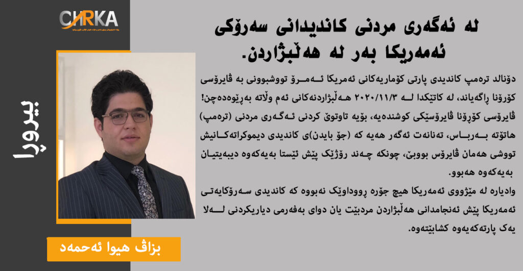 دۆنالد ترەمپ کاندیدی پارتی کۆماریەکانی ئەمریکا ئەمرۆ تووشبوونی بە ڤایرۆسی کۆرۆنا ڕاگەیاند، لە کاتێکدا لە ٣/١١/٢٠٢٠ ھەڵبژاردنەکانی ئەم وڵاتە بەڕێوەدەچن!