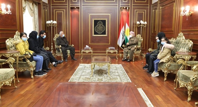 سەرۆك بارزانی پێشوازی لە خانەوادەی شەهید ئاوات تاڵیب مەجید دەكات