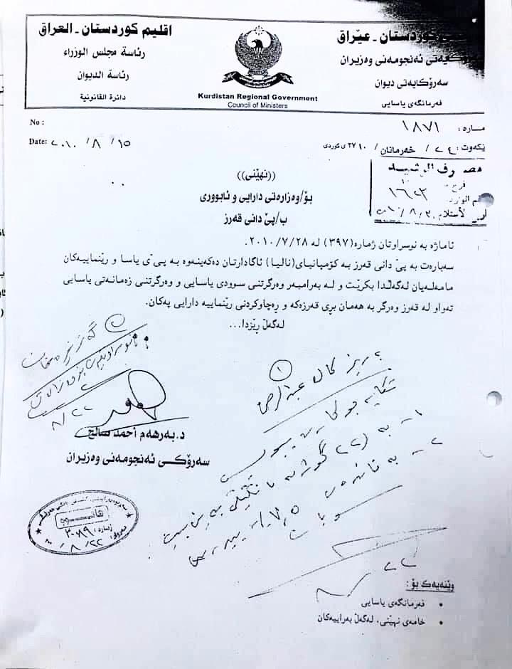 ساڵی 2010 بهرههم ساڵح سهرۆك وهزیرانی ئهوكانی ههرێمی كوردستان به نوسراوی ژماره 1871 داهاتێكی زۆری وڵات به شاسوار عهبدولواحید سهرۆكی گروپی بازرگانی كۆمپانیاكانی نالیا تاكو ئێسته له ساڵی 2021 ئهو قهرزه نهگهڕاوهتهوه.