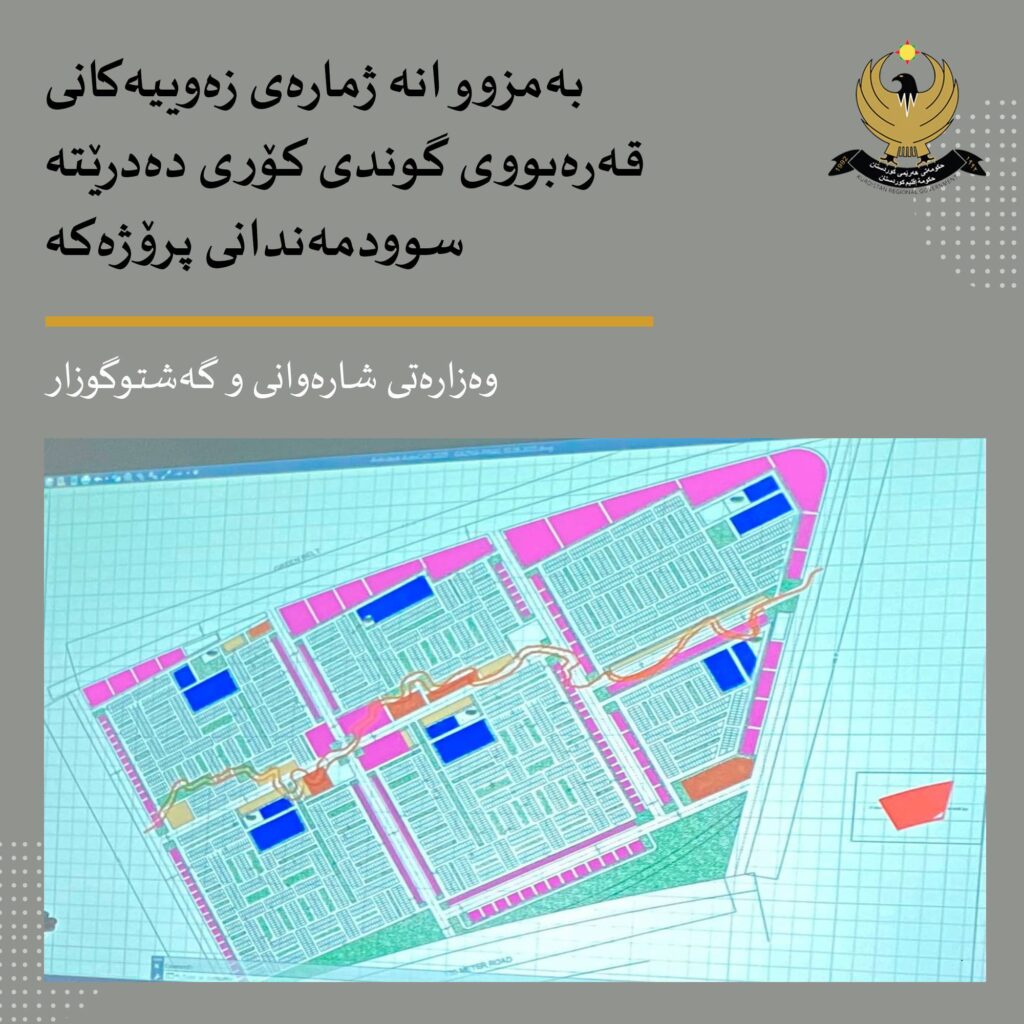 لهراگهیاندراوێكدا وهزارهتى شارهوانی و گهشت و گوزاری ههرێمی كوردستان بڵاوی كردهوه: ئەو تیمە بە هاوبەشی و هەماهەنگی لەپێناو خزمەتكردنی سوومەندانی پرۆژەكە، رۆژانە كاریان لەسەر نەخشەكە كردووە و دواتر بە ئامادەبوونی نوێنەرانی خاوەن زەوییەکانیش نەخشە نوێکە خرایەڕوو.