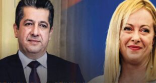 دوای سهردانێكی بۆ ههرێمی كوردستان و كۆبوونهوهی لهگهڵ مهسرور بارزانی، سەرۆک وەزیرانی ئیتاڵیا سوپاسی سەرۆکی حکوومەتی هەرێمی کوردستان دەکات.سەرۆک وەزیرانی ئیتاڵیا جۆرجیا مێلۆنی، لە تویتێکدا سوپاسی مەسرور بارزانی سەرۆکی حکوومەتی هەرێمی کوردستان دەکات. لە تویتەکەیدا، سەرۆک وەزیرانی ئیتاڵیا نووسیویەتی :“ئێمە بەردەوام دەبین لە پشتیوانیکردنی هەرێمی کوردستان، بەیەکەوە کاردەکەین بۆ دڵنیابوون …