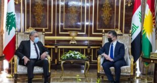 ئه‌مڕۆ دووشه‌ممه‌ 24/1/2022، مەسرور بارزانی، سەرۆکی حکوومەتی هەرێمی کوردستان، پێشوازیی لە دادوەر هنری خووری وەزیری دادی لوبنان و شاندێکی یاوەری کرد، کە لە سه‌رۆكى ئه‌نجوومه‌نى دادوه‌ریى لوبنان و یاریده‌ده‌ر‌ى ئه‌منیدارى گشتیى كۆمكارى عه‌ره‌بى پێک هاتبوو. شاندی لوبنانی جەختیان لە گرنگیی پەرەپێدانی پەیوەندییەکانی هەرێمی کوردستان و لوبنان لە بوارە جیاجیاکان کردەوە، …