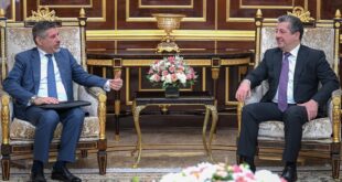 ئەمڕۆ شەممە 7/19، مەسرور بارزانی سەرۆکی حکومەتی هەرێمی کوردستان، پێشوازی لە باڵیۆز ستیڤن ڤەیگن هەڵسوڕێنەری باڵیۆزخانەی ئەمەریکا لە عێراق کرد. لە کۆبوونەوەکەدا، کە ستیڤ بیتنەر کونسوڵی گشتیی ئەمەریکا لە هەرێمی کوردستان ئامادەی بوو، دۆخی گشتیی عێراق و ناوچەکە و پتەوکردنی زیاتری پەیوەندیی دوولایەنە تاوتوێ کرا. باڵیۆز ڤەیگن، پشتیوانیی وڵاتەکەی بۆ …