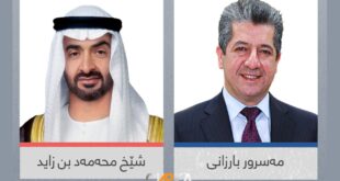 ئێوارەی ئەمڕۆ چوارشەممە (7ی كانوونی یهكهم/ دیسەمبەری 2022)، مەسرور بارزانی سەرۆکی حکومەتی هەرێمی کوردستان، پەیوەندییەکی تەلەفۆنی لەگەڵ سەرۆکی میرنشینی عەرەبیی یەکگرتوو (ئیمارات) شێخ محەمەد بن زاید ئالنەهیان ئەنجامدا. لە پەیوەندییەکەدا،گفتوگۆ دەربارەی پەرەپێدانی پەیوەندی دوولایەنە بە تایبەتی برەودان بە ئاڵوگۆڕی بازرگانی و وەبەرهێنان کرا. سەرۆکی حکومەت سوپاسی سەرۆکی ئیماراتی کرد بۆ …