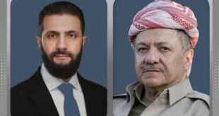 سەرۆک بارزانی: پێویستە مافەكانی گەلی كورد لە سووریا گەرەنتی بكرێن ئەحمەد شەرع: ڕەچاوی مافەكانی كورد و پاراستنیان لە سووریا دەكرێت ئێوارەی ڕۆژی یەكشەممە 18ـی 1ـی 2026 سەرۆک مەسعود بارزانی پەیوەندییەكی تەلەفۆنیی لە ئەحمەد شەرع، سەرۆكی سووریاوە پێگەیشت. لەو پەیوەندییە تەلەفۆنییەدا باس لە دوایین پێشهاتەكانی سووریا كرا و سەرۆک شەرع وێڕای …